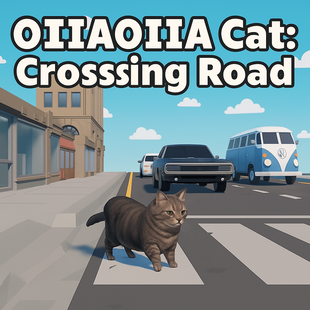 Help the OIIAOIIA meme cat cross dangerous roads in this funny 3D game. Avoid traffic, move fast, and see how far you can go without failing!