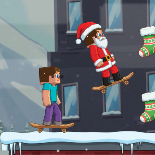 Skate Xmas is a unique Christmas-themed skateboarding game where you accompany Santa Claus on daring jumps across snow-covered rooftops. This winter, Santa has decided to try skateboarding, and you are the one to help him conquer this challenging journey. Help Santa safely skateboard across the rooftops and enjoy Christmas in a truly different way!