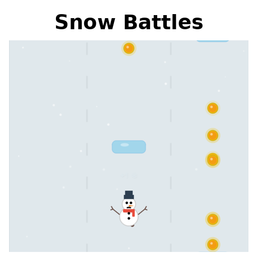Collected coins and rewards can be used in the upgrade shop to improve your chances of winning and increase your effectiveness in each race. Snow Battles allows you to unlock many exciting snowman skins such as the wooden-legged pirate snowman, the steel robot snowman, and many other unique outfits.